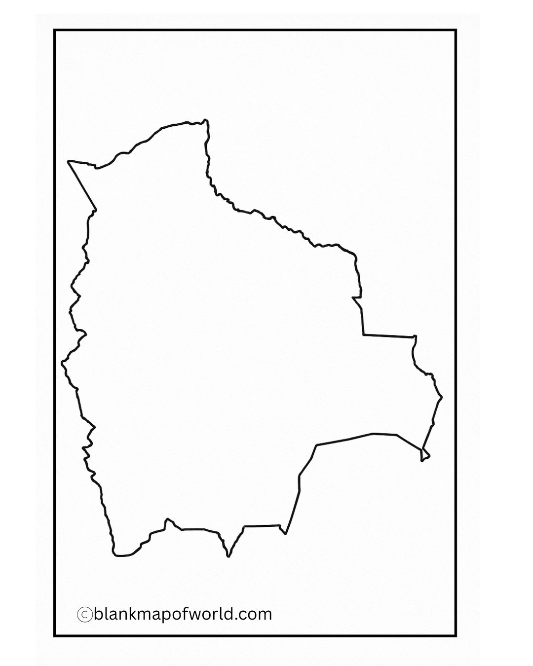 A Blank Map of Bolivia is commercial, offering a seriously stylized outline for manipulation in the worlds of education, geography, or analysis. Centrally located within South America, Bolivia is a landlocked country bordering Brazil to the north and east, Peru to its northwest, and southwestern Argentina, with which it shares a long and formidable boundary region, and Paraguay to the southeast. The blank map underscores Bolivia’s geographical uniqueness and diverse terrain on the huge scale it covers.